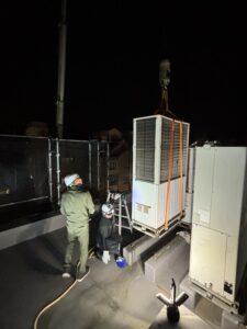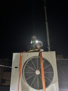 クレーン、室外機搬出作業⬇️ 玉掛け作業⬇️
