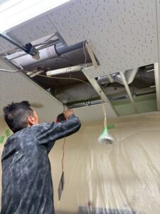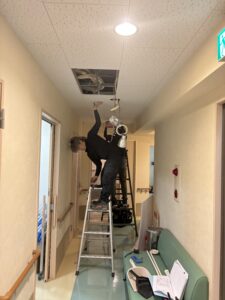 ジプトン、照明を外し作業⬇️ 配管、配線入れ替え作業⬇️